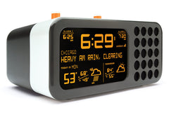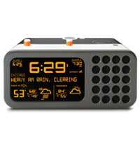 The Mist Clock Radio eliminates complexity from your bedside and replaces it with intuitive access to clock and alarm functions, plus a 2-day weather forecast from AccuWeather.com. Mist has all of the features of our Flurry Alarm Clock, plus an FM radio with RDS (Radio Data System), and Ambient’s new InTouch™ Messaging Service.